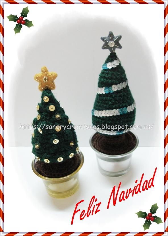 En esta entrada vengo sin Dani para mostraros unos árboles de Navidad que tejí hace un tiempo y aún no había encontrado el momento de compartirlos en el blog y este año me he decidido. Son unos árboles pequeñitos de unos 15 cm para poder adornar vuestra mesa, cualquier estantería o para regalar como presente en estas fechas. Os cuento que materiales utilicé y como los realicé