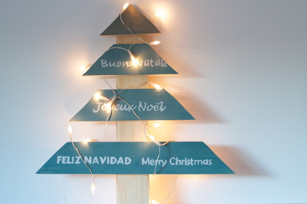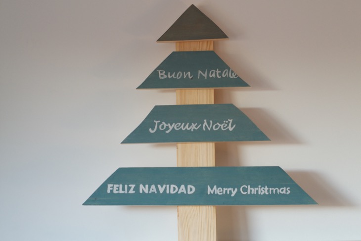 Ya en mi casa decidí darle mi toque personal con unas letras de Feliz Navidad en varios idiomas.