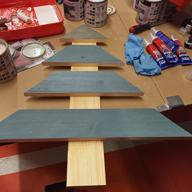 Se trataba de realizar un arbolito de Navidad con tablones de madera, y decorarlo a nuestro gusto con las pinturas de Xylacel Decolasur