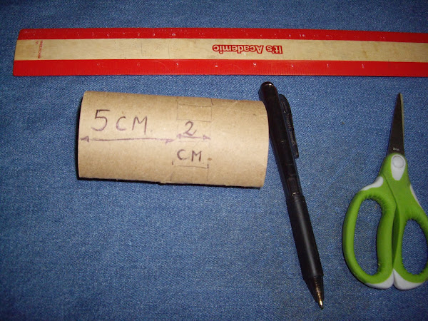 Para realizar la macetita, tomamos el tubito de papel higienico y marcamos desde un borde hacia adentro 5 cm, luego marcamos otra linea a los 2 cm , lo que queda del resto del rollo lo cortamos.