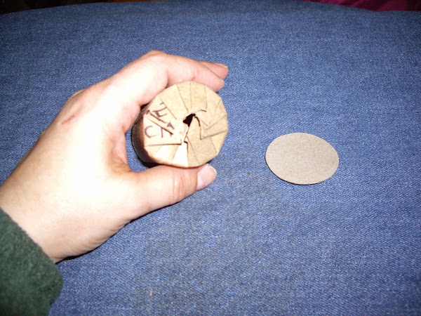 En la franja de los 2 cm le realice cortes cada medio cm aproximadamente, pero teniendo la precaucion de no pasarme de la linea de los 5 cm. Esa franja de 2 cm donde realice los cortes, la debemos doblar para formar la base de nuestra maceta, y cortamos un circulo en otro carton que cubra el diametro de nuestra base