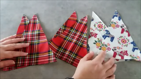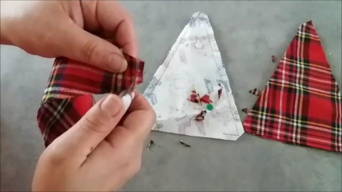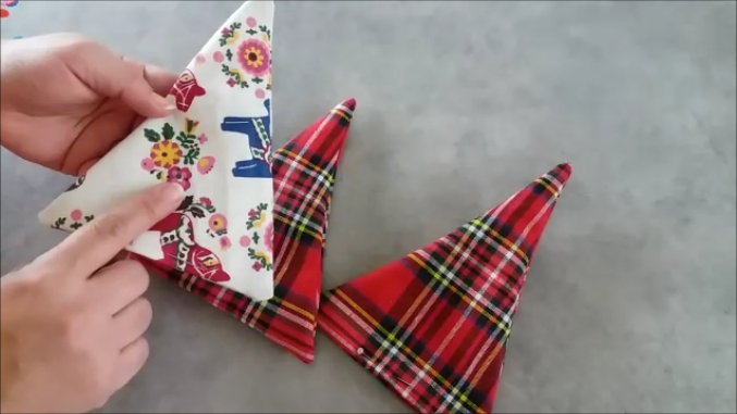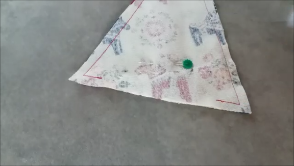 Hecho esto, cortamos las puntas en diagonal y rebajamos un poquito por los lados para evitar que se haga bulto cuando demos la vuelta: