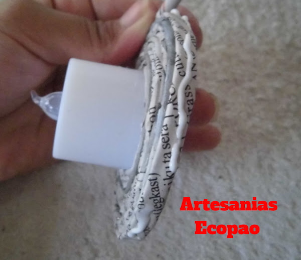 Usa como molde algo, que tenga forma de cono, en este caso use una tapa de un pegamento, que casi va a dar a la basura. Coloca tu molde sobre los rollitos.