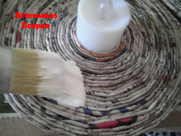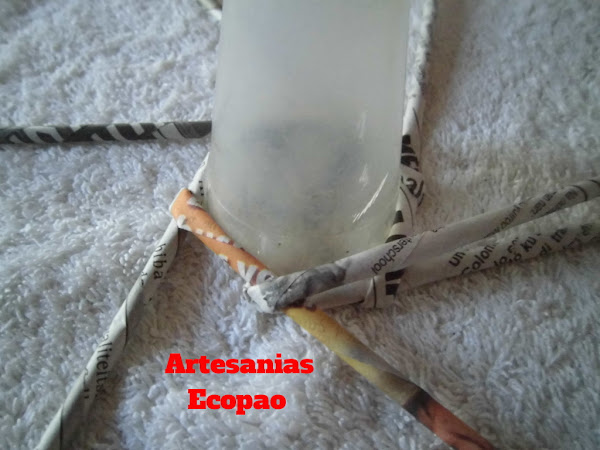 Toma la velita y coloca un poco de silicona fría al rededor, en la parte inferior. Aplana un rollito y pegalo al rededor de la velita.