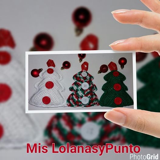 Son arbolitos hechos a ganchillo y decorados con botones, los que adornarán mi árbol de Navidad de este año. Llevo estos tres...., aún me quedan unos cuantos!.