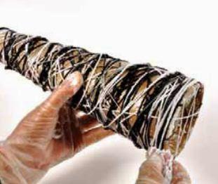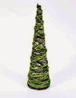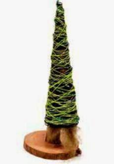 2.-Con la cuerda de colores forramos en forma desordenada el cono,usa pegamento blanco para que se vaya adhiriendo ,una vez seco el pegamento en la cuerda,asi de fácil ya tendremos el molde del arbolito.