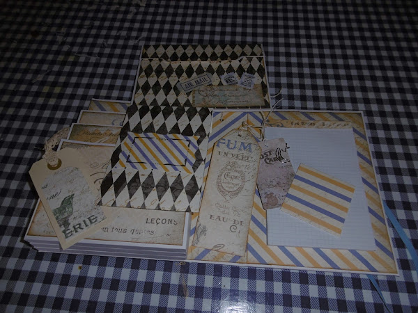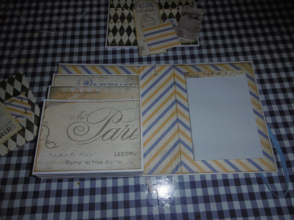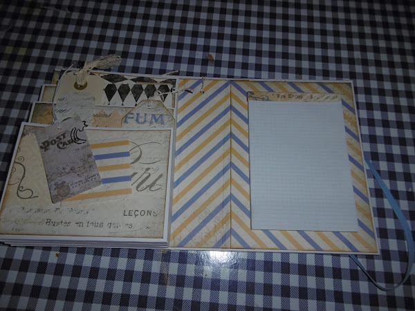 Por lo demás también le he puesto una libreta y tag y sobres en los bolsillos, esto hace que quede más "lleno", sino mirara la foto de abajo...pide decoración!!! en este caso la decoración son elementos de pon y quita y que se pueden usar aparte.