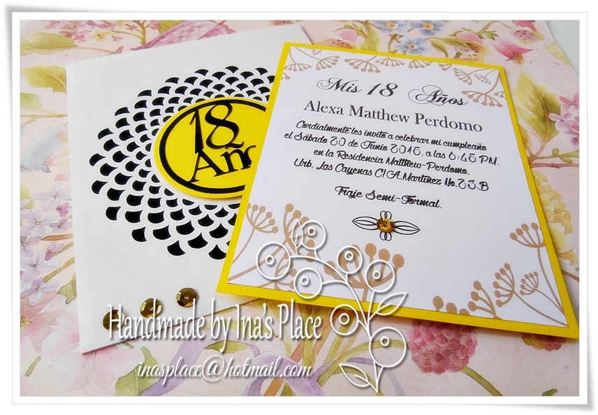 Hoy les traigo un hermoso sobre con el centro calado. Me gusta porque su diseño resulta versátil ya que podemos usarlo para cualquier tipo de invitación, por ejemplo, en la imagen que te muestro lo usé para una invitación de cumpleaños(18 años) en Blanco y fondo negro.