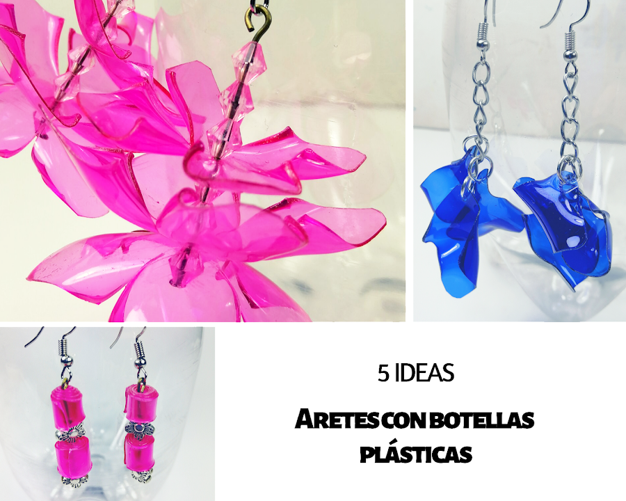 Hoy les traigo 5 modelos de aretes o pendioentes hechos con botellas plásticas y lo mejor es que cada uno le puede dar el toque personal al combinar las técnicas, colores y elementos adicionales que les pongan.
