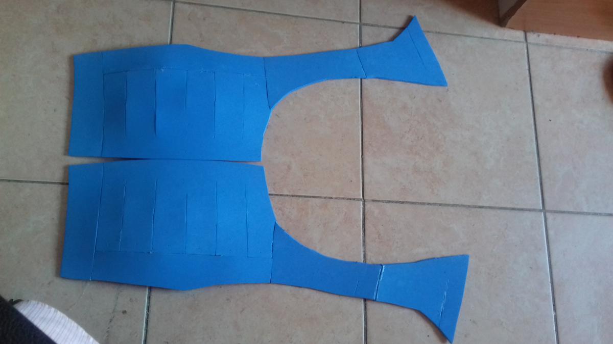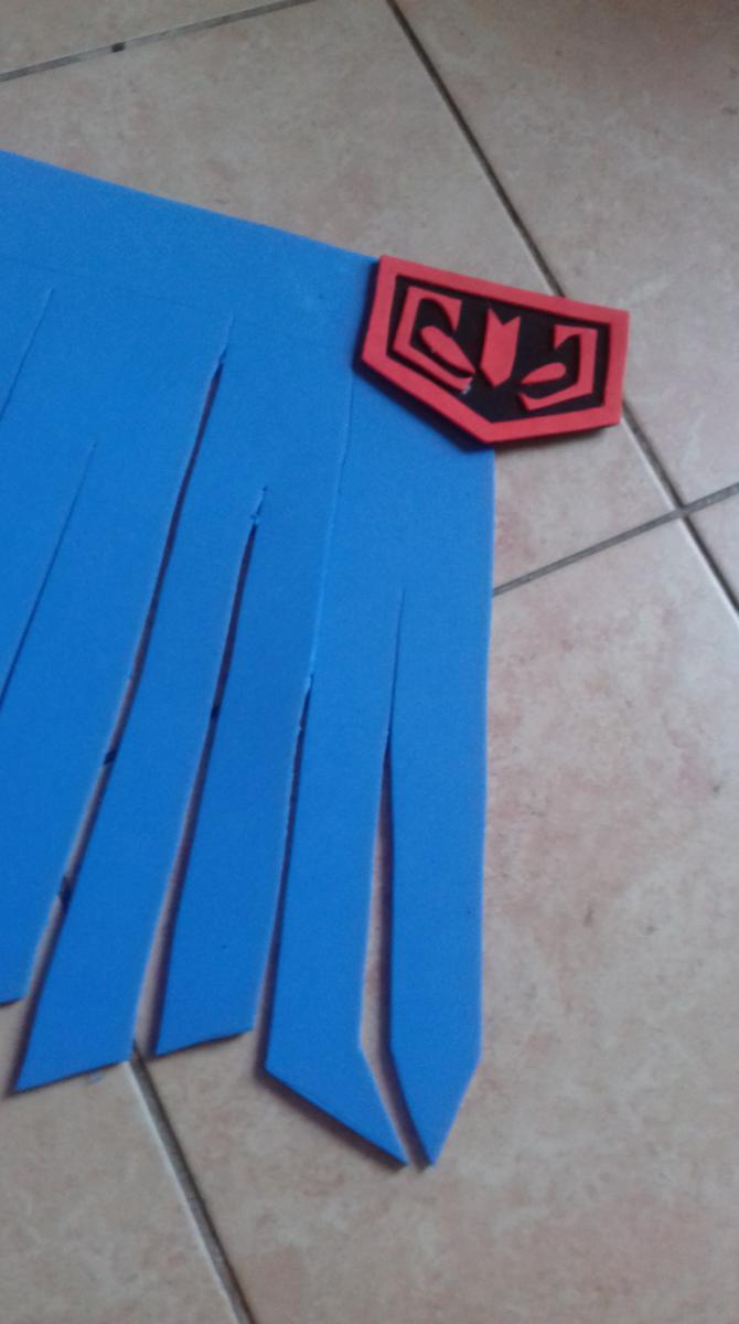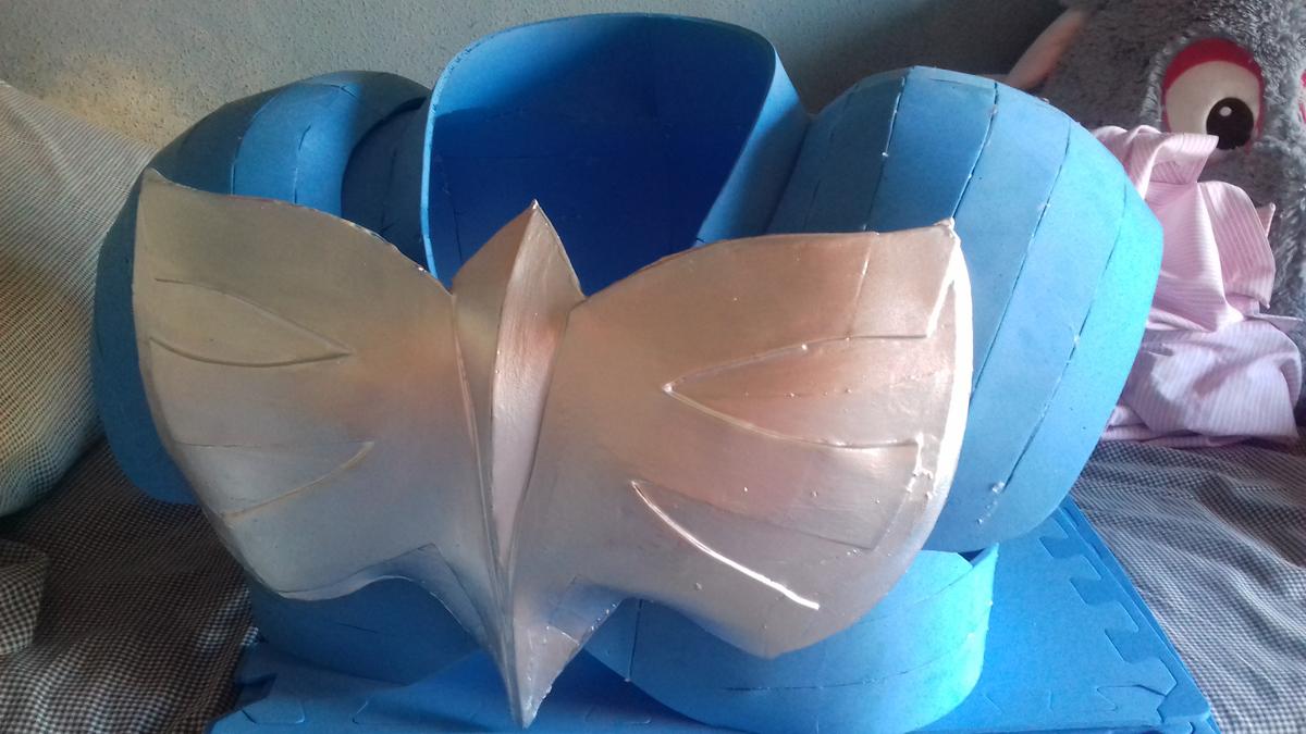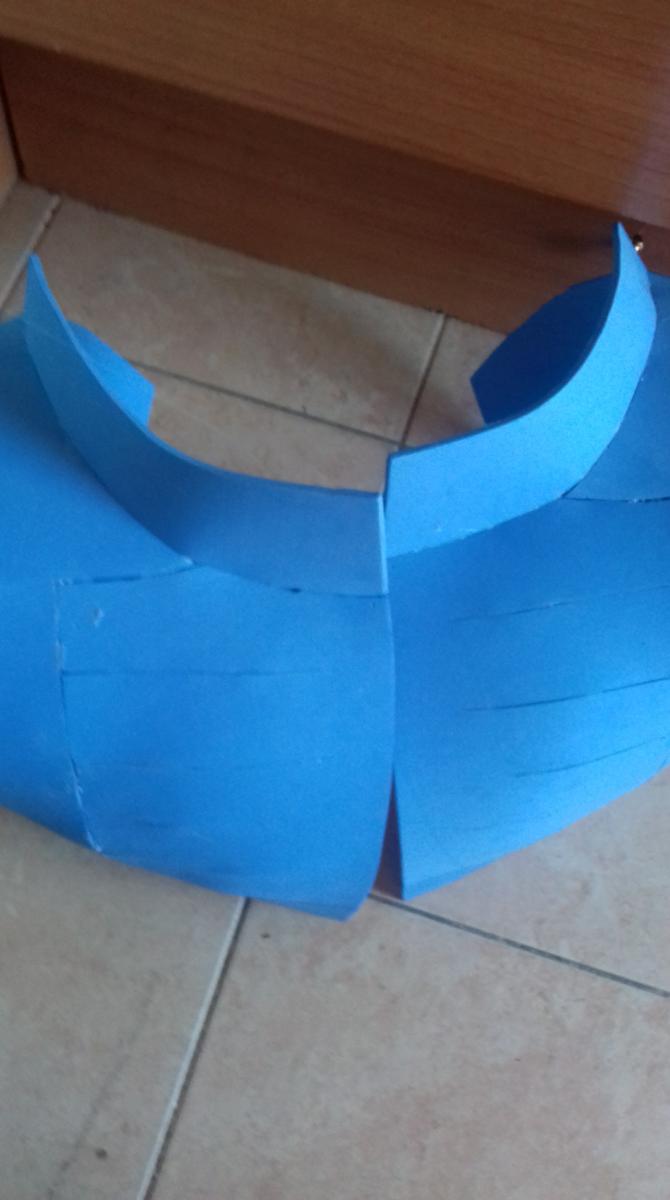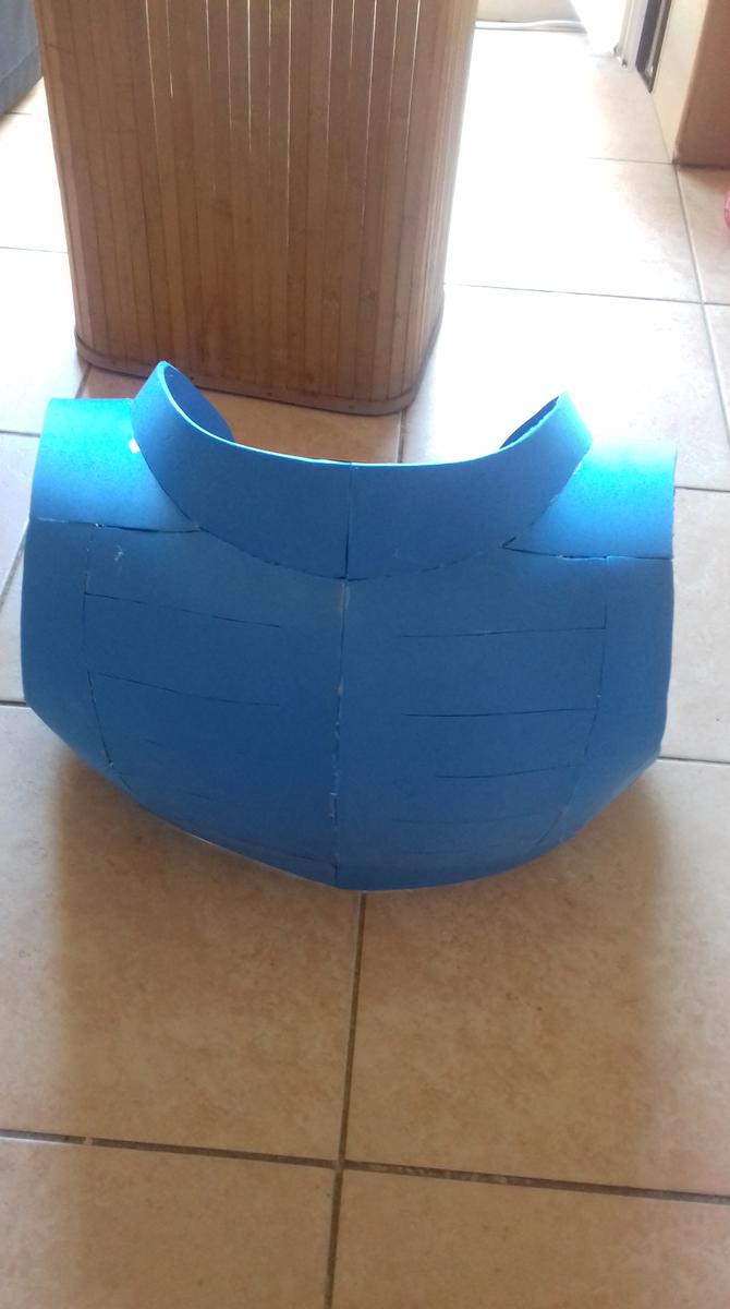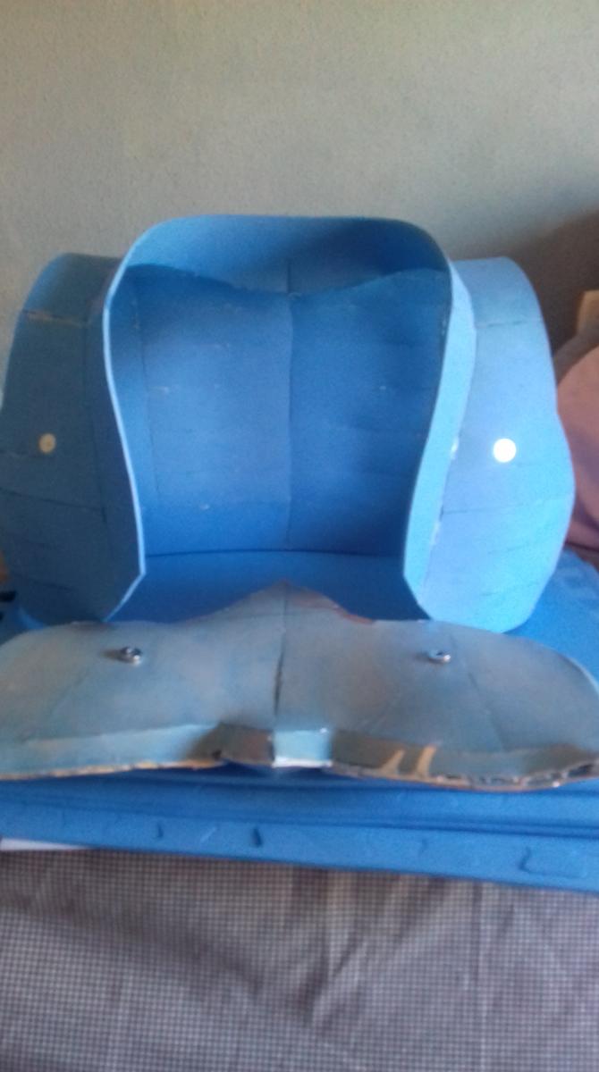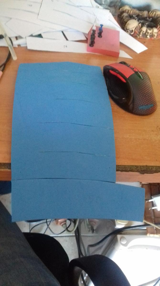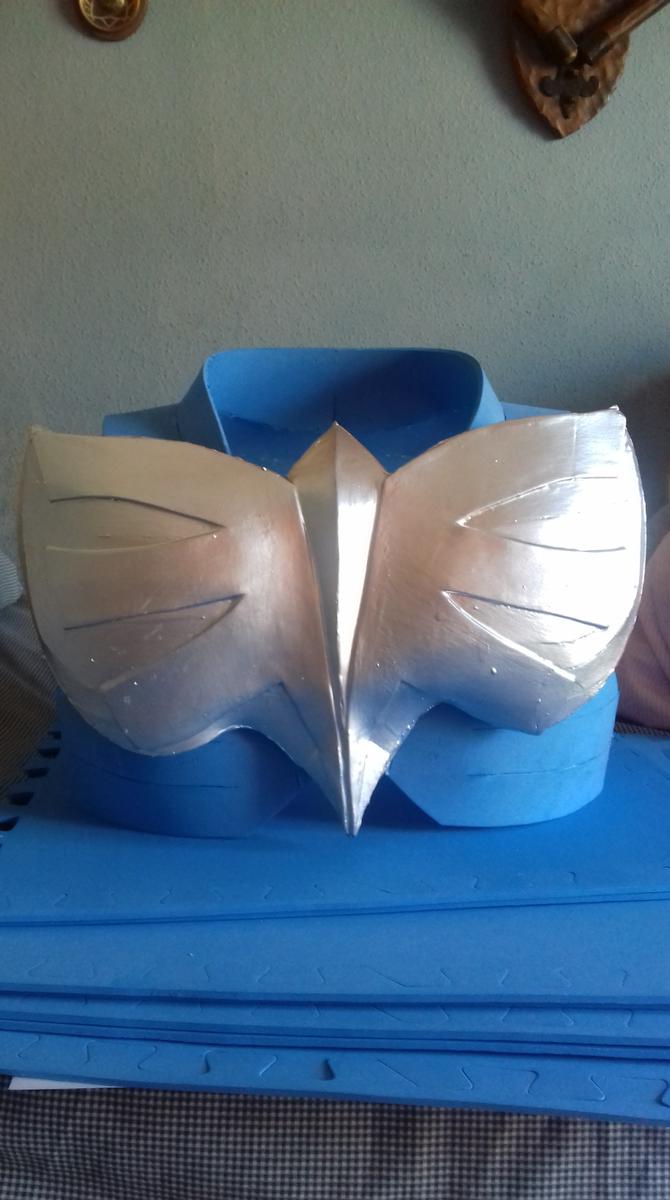 Uno de los procesos más largos es la creación del peto. La placa ya estaba terminada pero había que sujetarla a algún sitio, es por eso que creé el peto según un recorte que yo mismo había hecho en pepakura. Queda como un chaleco y, colocándole un par de imanes se puede pegar la placa a la hora de vestir la armadura. En días posteriores me daría cuenta de que necesitaría imanes más potentes o pegar la placa al peto.