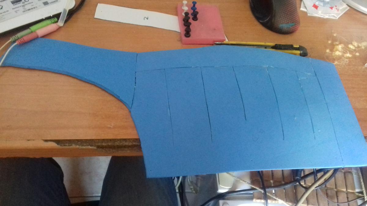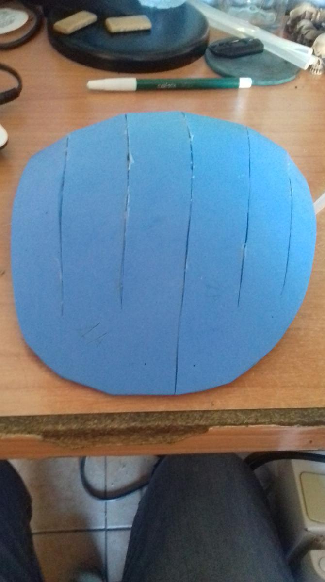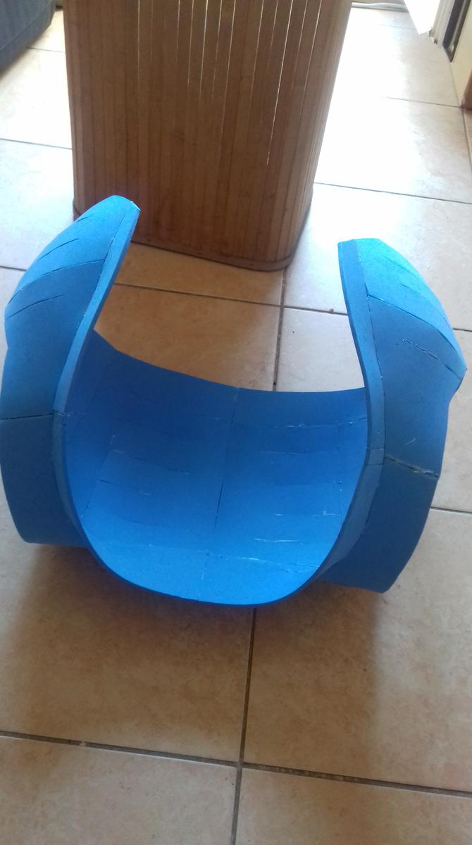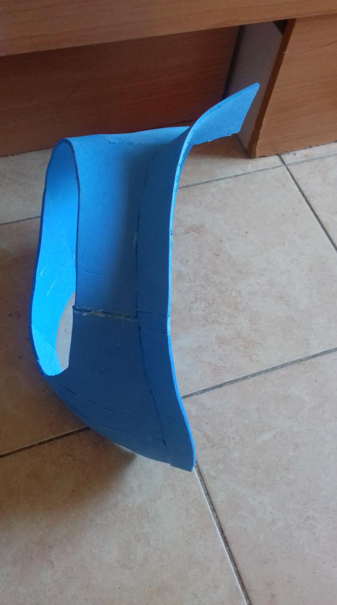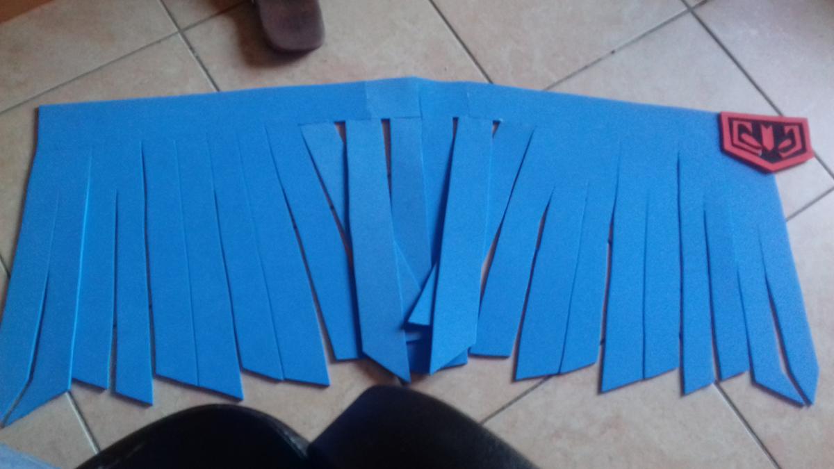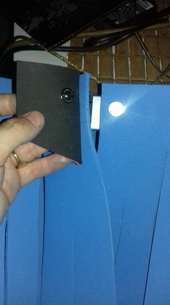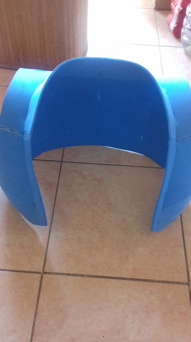 Uno de los procesos más largos es la creación del peto. La placa ya estaba terminada pero había que sujetarla a algún sitio, es por eso que creé el peto según un recorte que yo mismo había hecho en pepakura. Queda como un chaleco y, colocándole un par de imanes se puede pegar la placa a la hora de vestir la armadura. En días posteriores me daría cuenta de que necesitaría imanes más potentes o pegar la placa al peto.