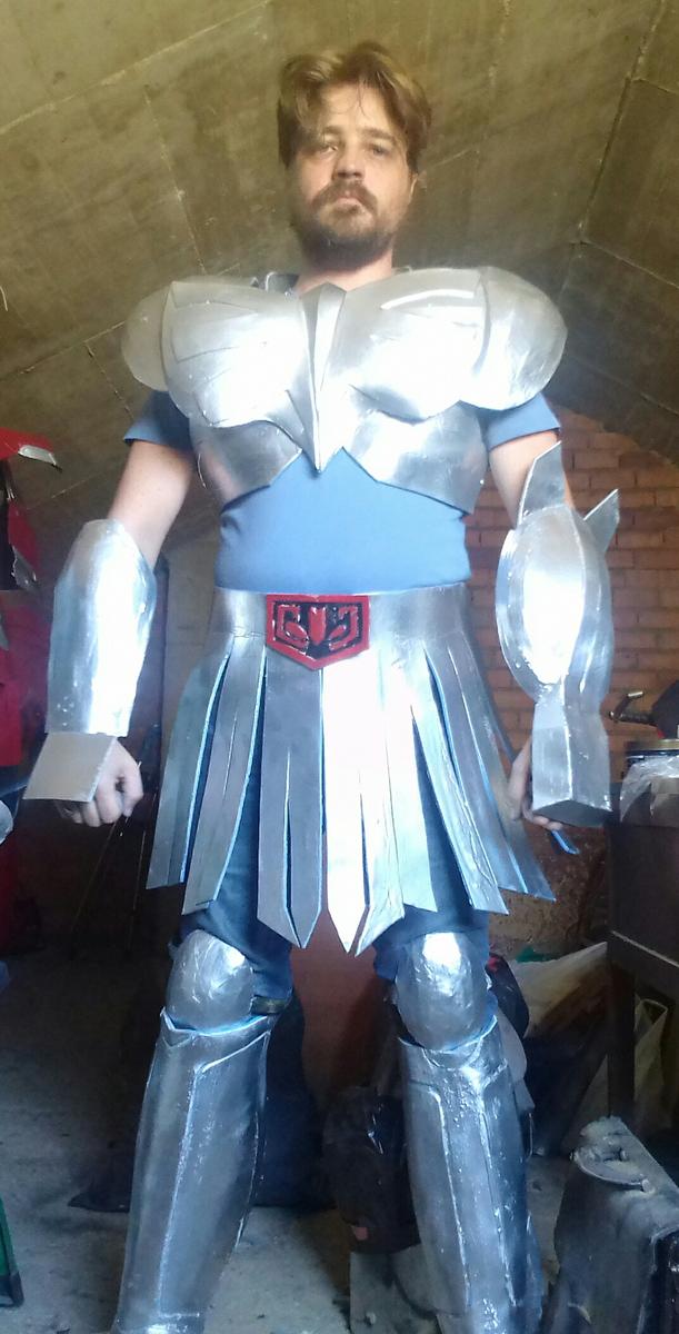 Podemos calcular unos 20 euros en goma eva, otros 20 la pintura (dos botes de pintura buena y los pequeños para los detalles) y las presillas y las gomillas otros 5-10 euros. Por un total de unos 60 euros y dos semanas de trabajo, queda una armadura muy interesante, sólo habría que añadir unos guantes plateados y unos cubrebotas del mismo color.