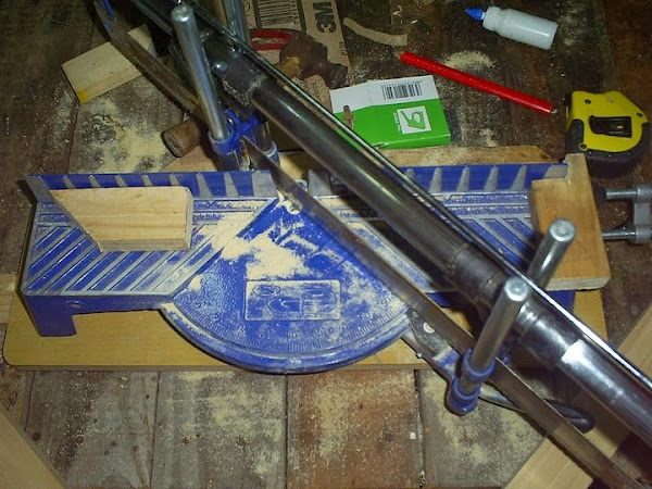 Al cortar cada una de las 4 varillas que conformaran el bastidor cortaremos en 45 grados y con el ángulo del chaflan las cuatro varillas con el serrucho moviéndose de en sentido de derecha a izquierda, lógicamente de forma oblicua. Luego cortamos los otros extremos de la misma forma pero posicionándonos con las varillas en sentido contrario al que nos encontrábamos y los movimientos de corte serán de izquierda a derecha