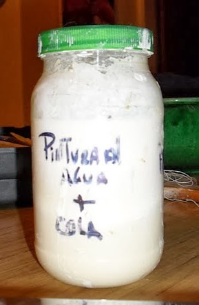 Combinamos la pintura con cola. La pintura a utiliza se llama Emalte al Agua y ya viene lista, generalmente su presentación es en tarro.