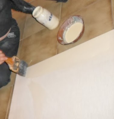 Con la pintura lista procedemos con la siguiente proporción: 1 de agua, dos de pintura y una de cola.