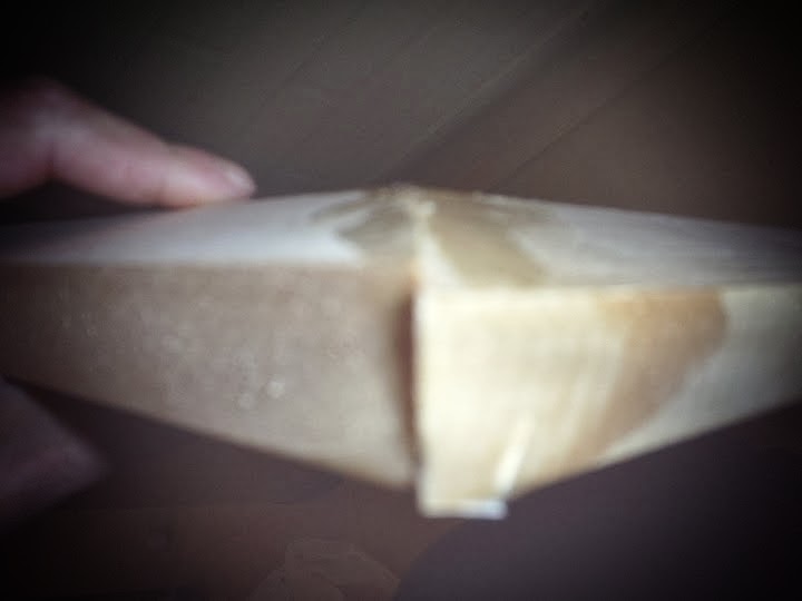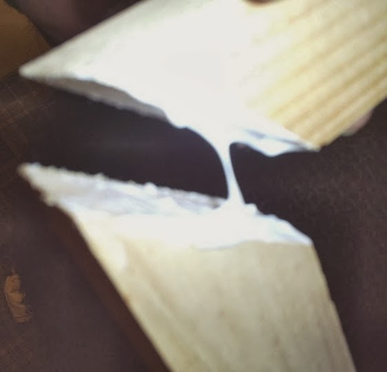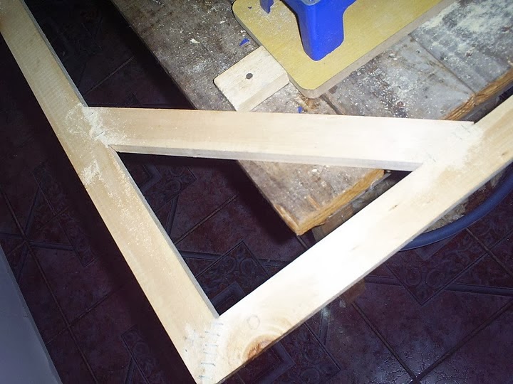 En las cuatro puntas cubrimos los espacios que pueden quedar en las uniones con un poco de cola fría y un poco del polvillo de la madera que queda de los cortes. Lijamos una vez seco para que no queden asperezas.