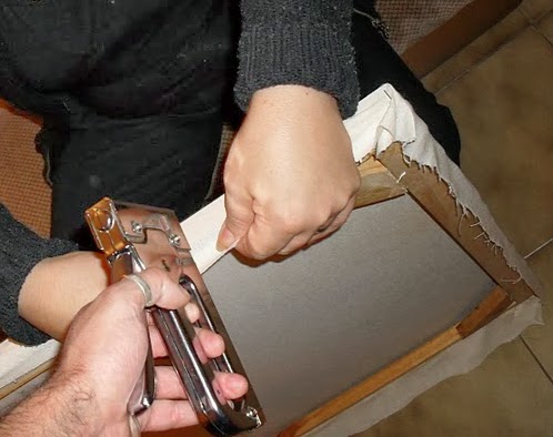 Nuevamente recurriremos a la corchetera o maquinas de ganchitos para colocar la tela.