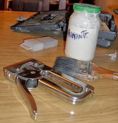 Esto vendría a ser Gesso Artesanal y será nuestro imprimante. El gesso no artesanal, el industrial lleva creta y aditivos, como cola de conejo, que son difíciles de conseguir.