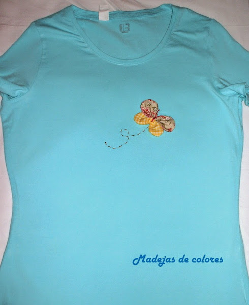La camiseta es de un bonito celeste aturquesado, uno de mis colores favoritos y colocando unas bonitas telas que contrastarán y unas antenas con madeja, quedó el desperfecto completamente solucionado y satisfecha del resultado. Que opinan????