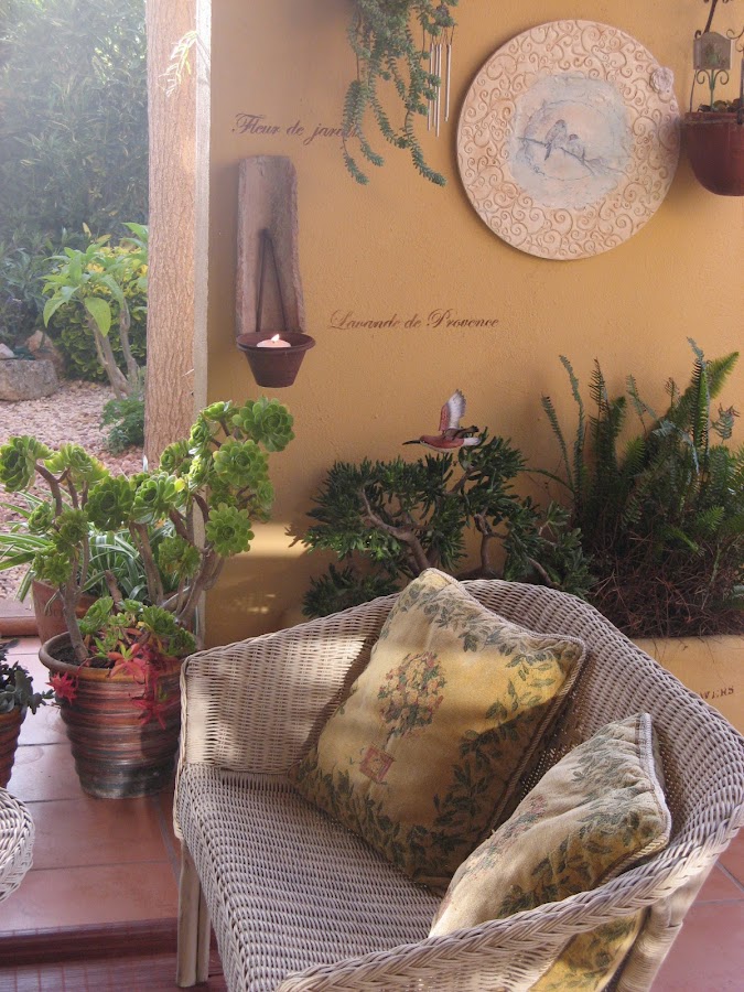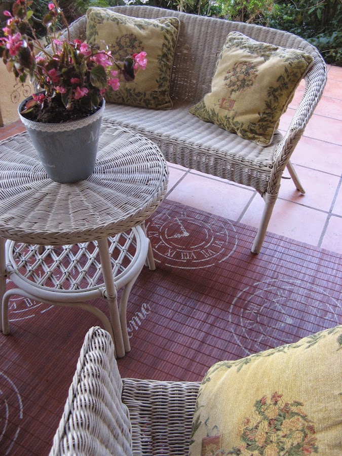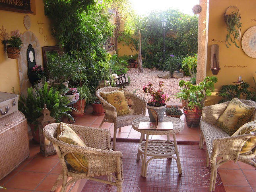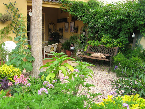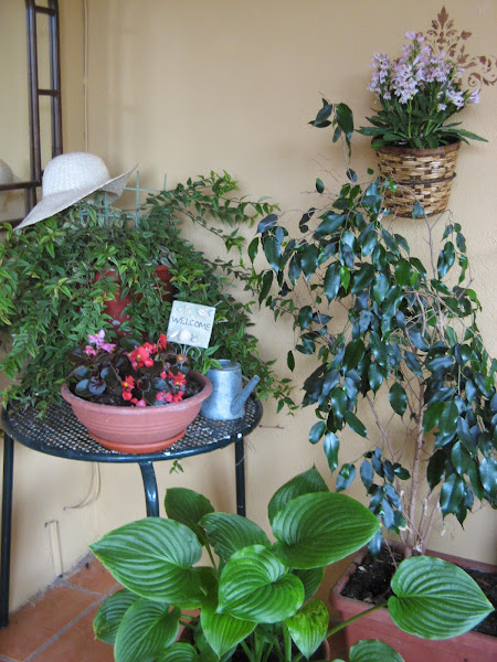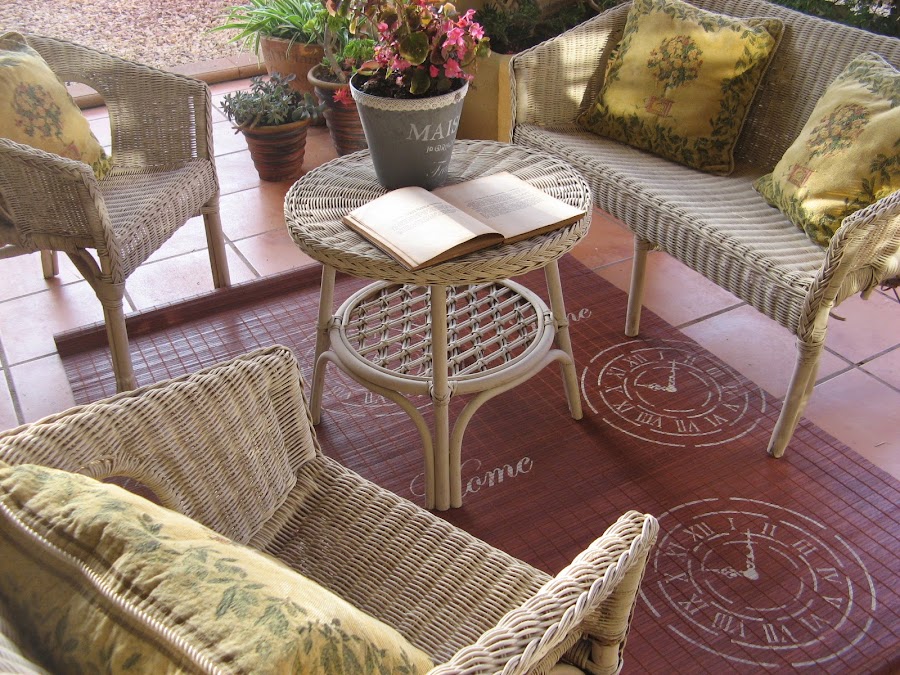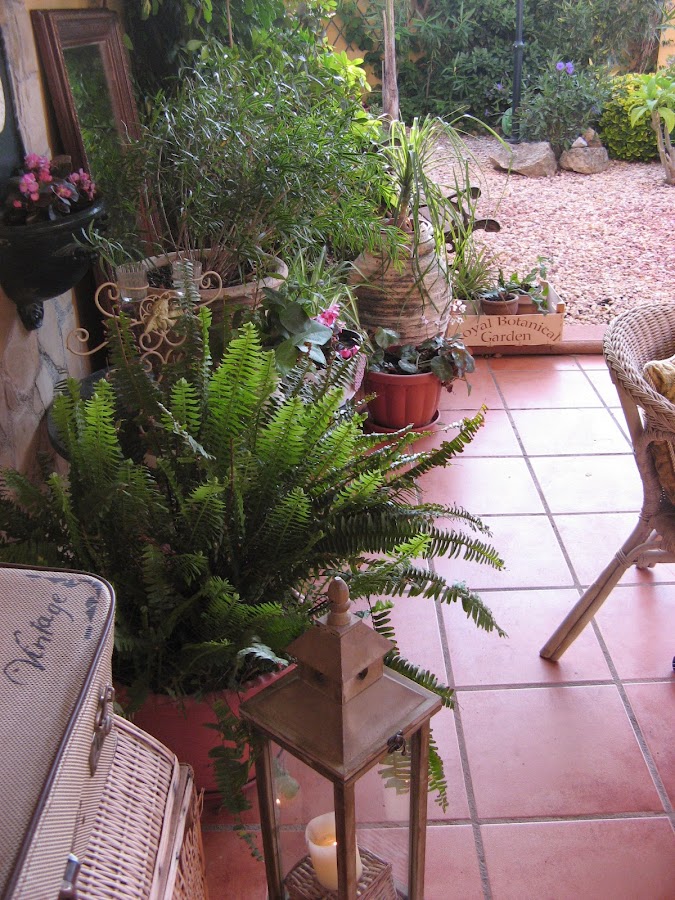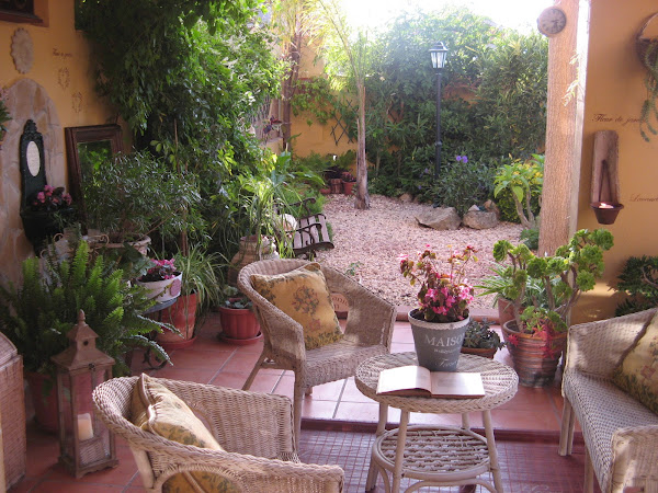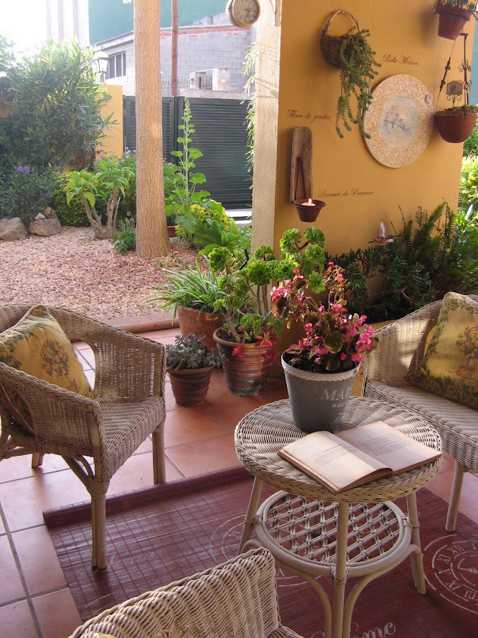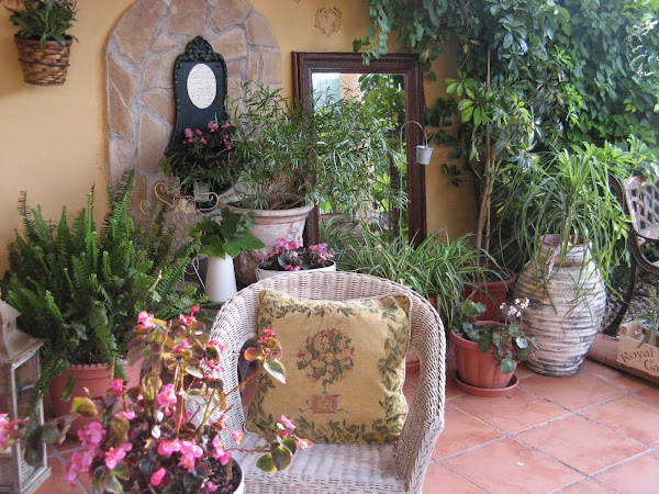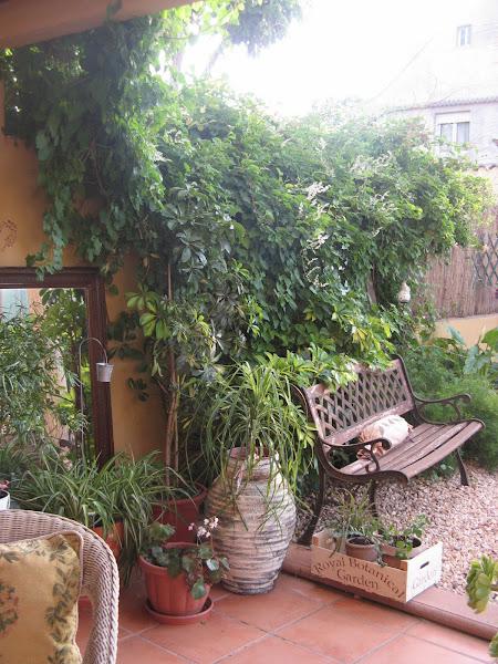 Doy por terminado el "arreglo" que estaba haciéndole a la terraza del salón. Todos los años por estas fechas cuando empieza el buen tiempo, le dedico un poco de tiempo a esta terraza....está orientada al Oeste...es bastante fresca...solo le dá el sol al atardecer...el poco sol que se cuela entre las plantas....