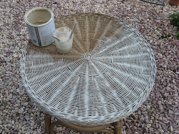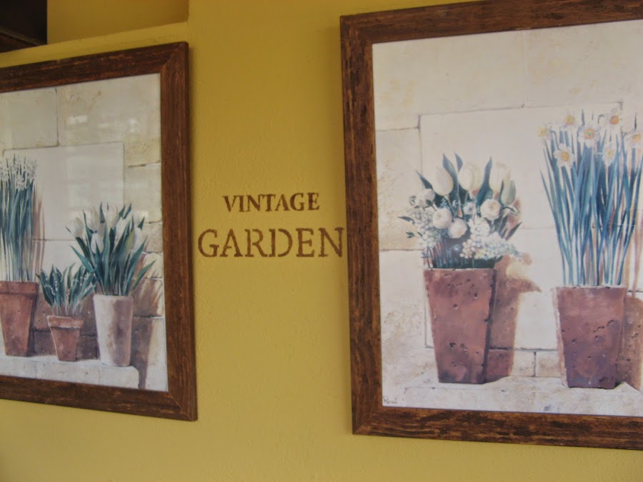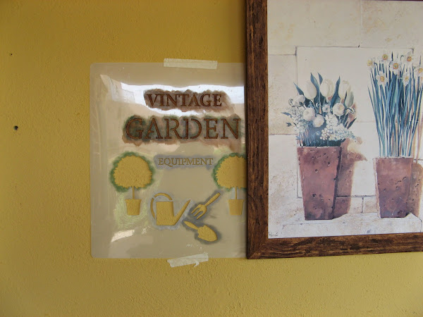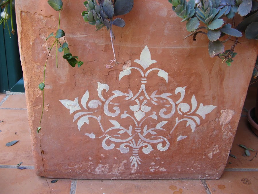 Sobre los soportes de las macetas un arabesco estarcido...con una plantita colgante lucirían más...la cambiaré...