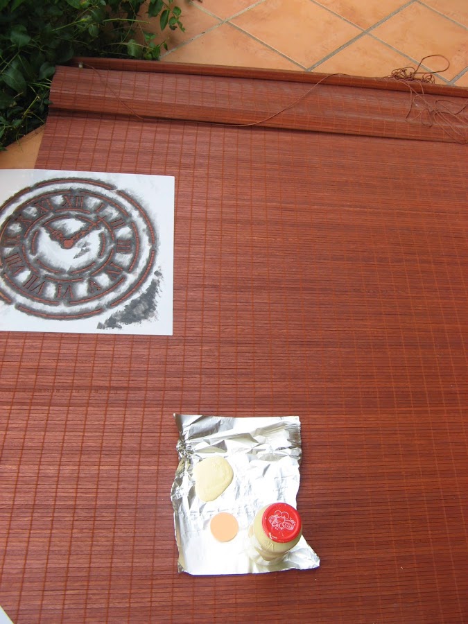 La alfombra....en realidad es el estor que tenía uno de mis hijos en su habitación (lo "heredamos" de otra de mis hermanas)...él ya no lo quería y se me ha ocurrido decorarlo....puede usarse de alfombra....