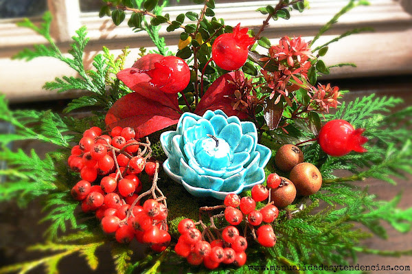 Para terminar colocaremos una pequeña vela en forma de flor en la parte central.Colocando a distintas alturas los elementos de nuestro arreglo floral conseguiremos un acabado más natural y bonito. En el foto tutorial veréis con más claridad todas las fases para que os quede perfecto.