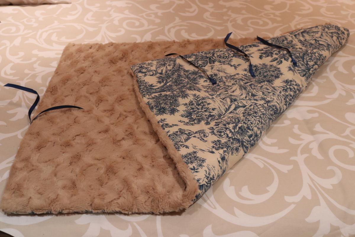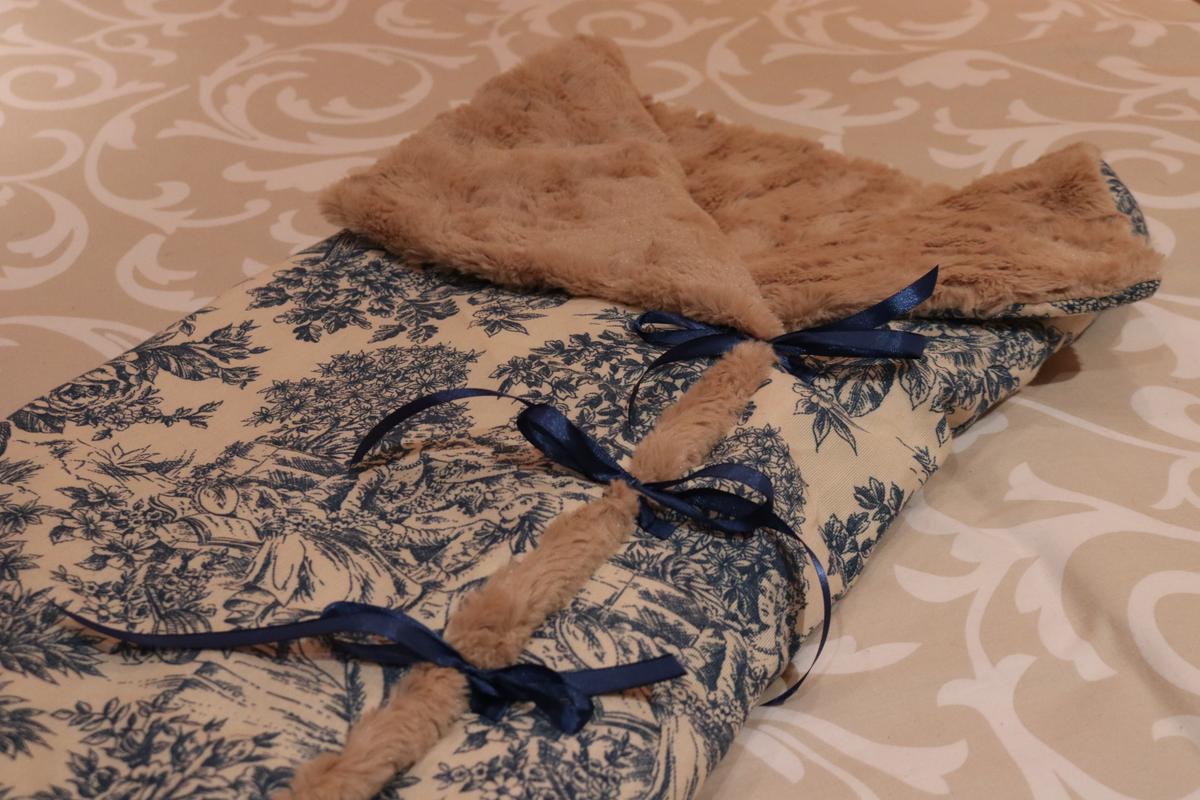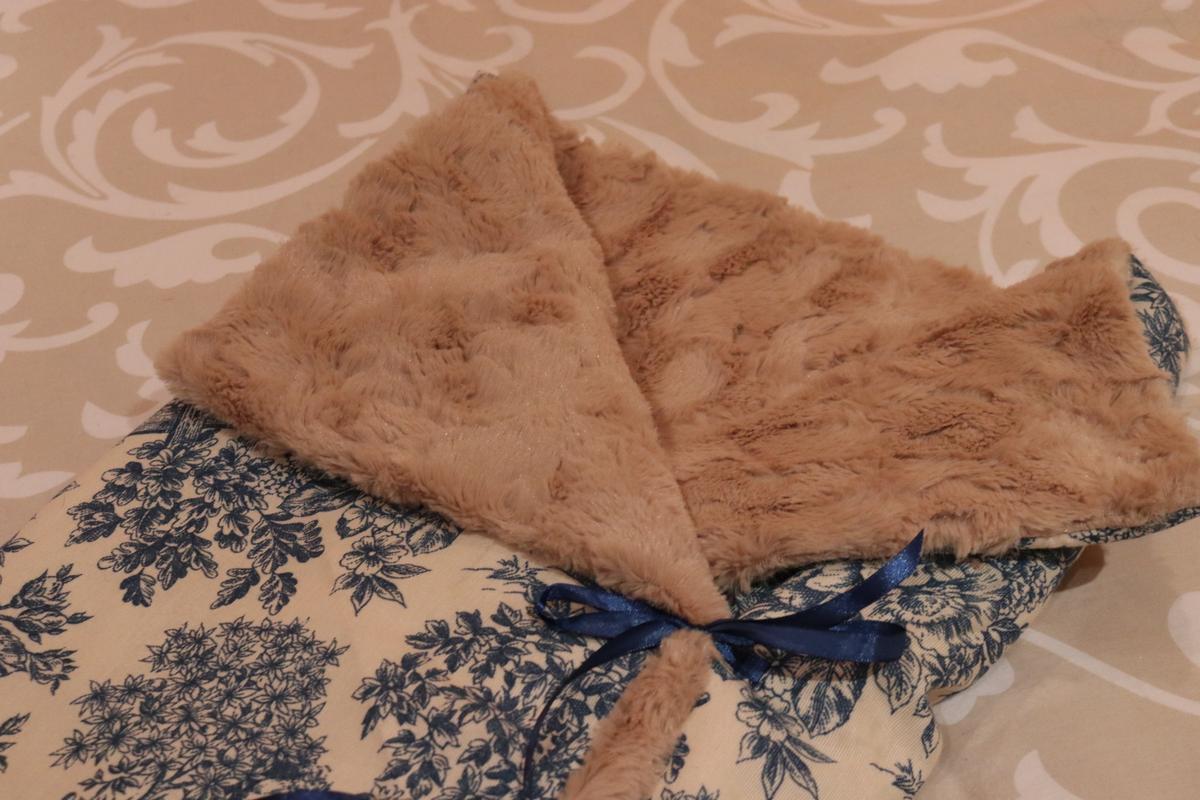 El que yo hice mide 100x75cm aunque podemos variar la medida a nuestras necesidades. También esta relleno con guara ya que está pensado para invierno y así es mucho más mullidito, aunque si donde tu vives hace menos frío puedes hacerlo igualmente sin el relleno.