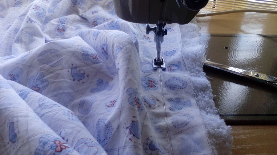 Unimos los dos rectángulos a maquina dejando un trozo sin coser para poder darle la vuelta a nuestro arrullo.