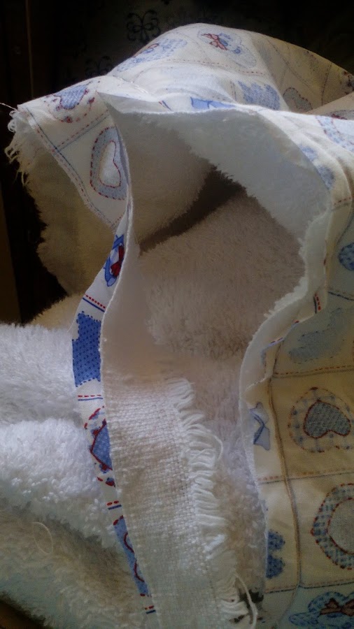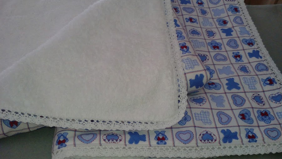 Ten en cuenta un detalle.. El tejido de rizo o toalla va a tener un ancho 1,50 mt, quiere decir que con los 90 cm que compres tendrás para coser dos arrullos, puedes comprar el tejido de algodón estampado con un ancho de 90 cm. o bien comprarlo de 1,50 mt de ancho también y hacer dos arrullos iguales. Te aclaro esto para que no desperdicies la tela de rizo, aprovéchala para hacer dos arrullos o el sobrante haces una toalla para el bebe.