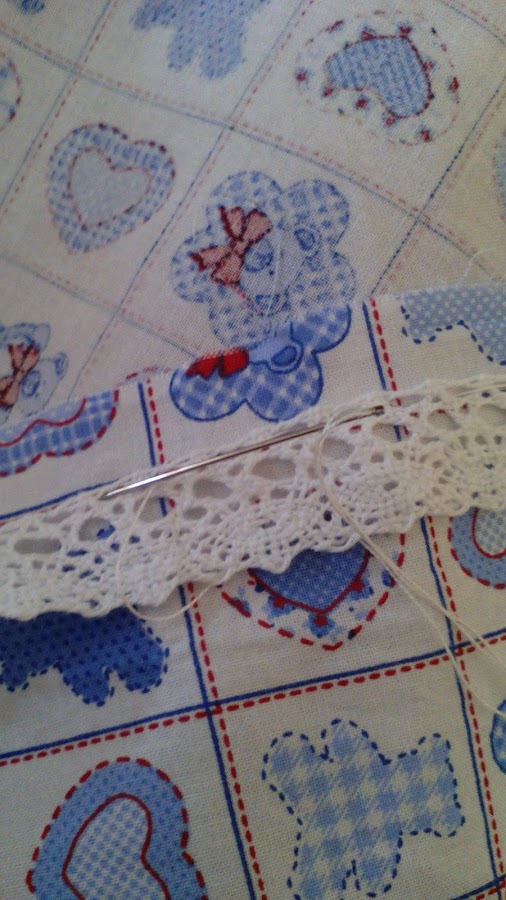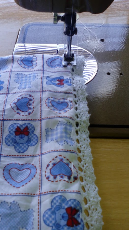Ponemos la puntilla de esta forma al tejido estampado.