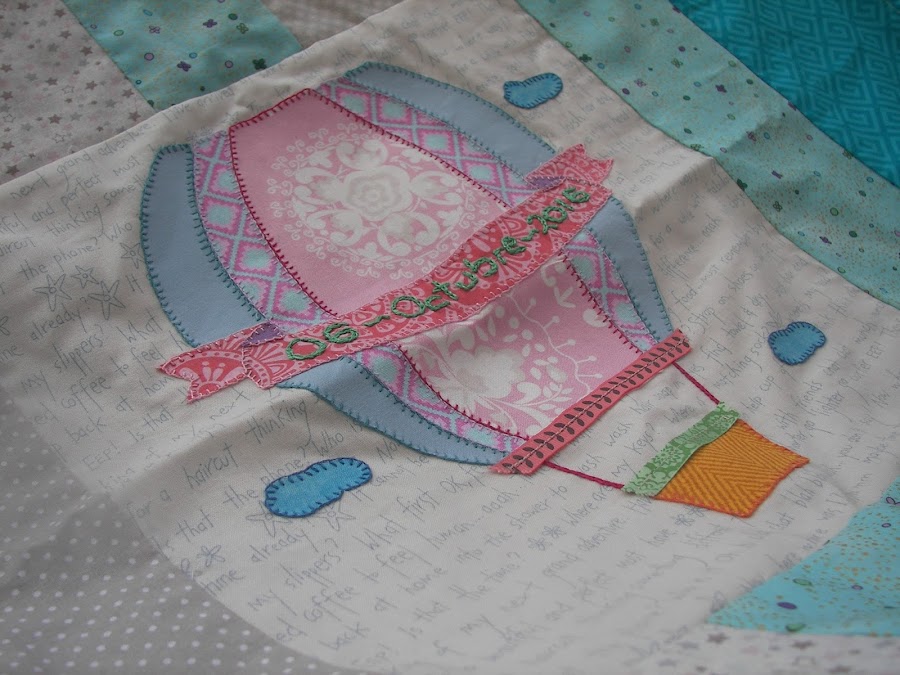 Un truquito para coser el minky al top (decidí no poner bies y hacer costura decorativa en su lugar) es poner muchos alfileres, uno cada dos o tres centímetros, que quede muy bien sujeta, porque el minky es un poco elástico y además se resbala un poco al pasarlo por la máquina, quedando todo arrugado. A mi me tocó deshacer y volver a coser. Si tenéis prénsatelas de doble arrastre no creo que os suceda esto, pero yo aún no me he hecho con uno.