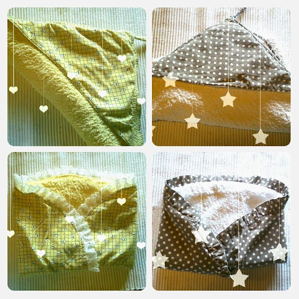 El conjunto marrón va a juego con la habitación del pequeño, (tengo pendiente poner un post de como la diseñamos) Es un conjunto de arrullo y toallita con cabeza.