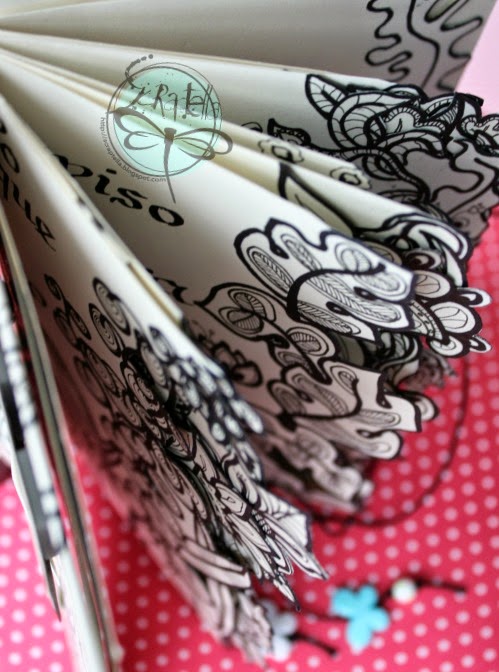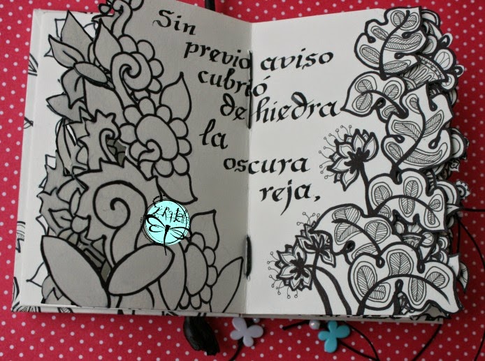 Todo es blanco y negro, sólo hay un pequeÑo guiÑo de color en mi mariposita azul turquesa, ya saben que por ahora este es mi color fetiche jejeje. La contraportada es lo único que esta en "blanco sobre negro".