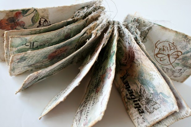 Esta todo hecho en lienzo, y mixed media, con collages, pinturas, sellos...