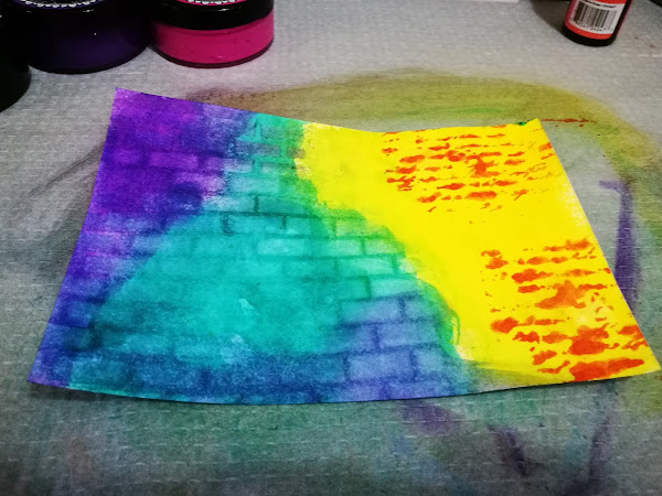 con dylussion sprays colores lemon zest, crushed grape y vibrant tourquoise , creé un fondo