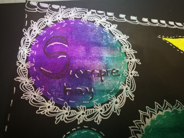 y ahora sí, primero con miedo, luego sin vergüenza y a lo loco, boli blanco de gel en mano, pe puse a garabatear toda la página..... y la verdad......me gussstaaaaaaa