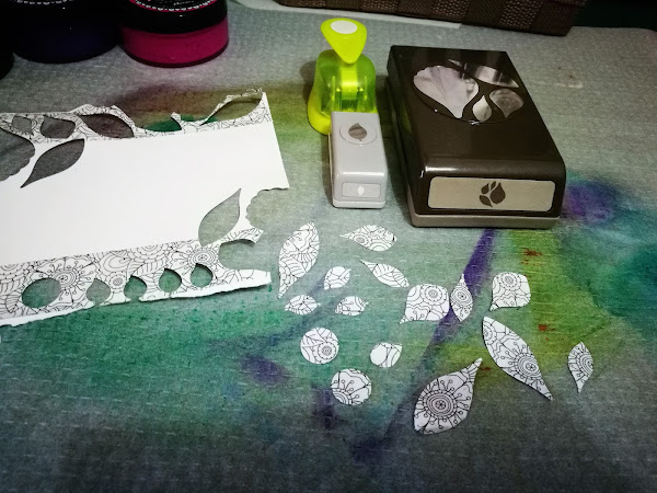 con unos círculos más grandes troquelados en la big shot, acabé de tapar todo lo que quería que conservase el color de fondo