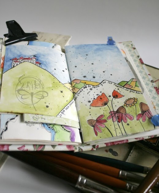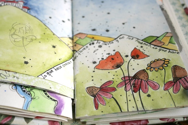 Pero esa no es la idea, ni la actitud a la hora de hacerse un "art journal" (diario creativo), la idea es pasártelo bien contigo misma, sin importar cómo salga, porque no se trata de mostrarlo, ni de exponerlo... ya decía yo que con mostrar este diario mio estaba descubriendo mi lado exhibicionista!