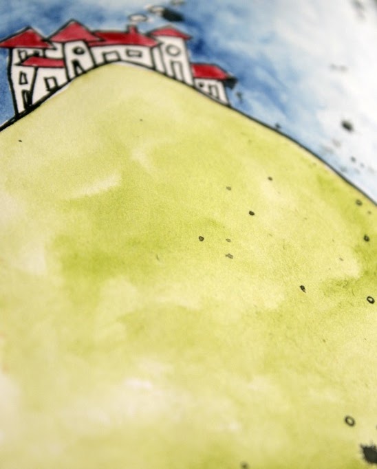 Que las páginas en blanco no te asusten, comienza con algo simple, sencillo, algo clásico como este motivo mio que te muestro: Un paisaje de toda la vida! lo que yo vengo dibujando desde que era chiquitita! un pueblito en una loma... mi pueblito! el que hasta ahora veo cuando voy llegando a mi pais, a mi tierra, a mi casa... (el pueblito creció un montóoon, pero desde determinado punto de la vía, se sigue viendo chiquito...)
