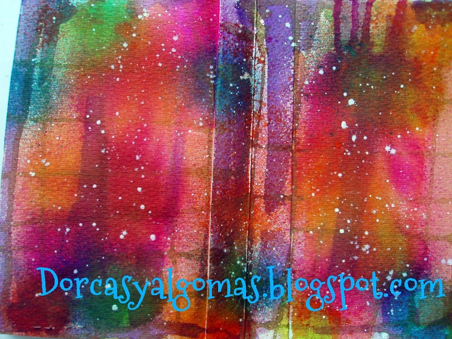 En esta ocasión, como en otras tantas, ya tenía hecha la primera capa de mi página, pues había limpiado en ella una brocha con pintura.
