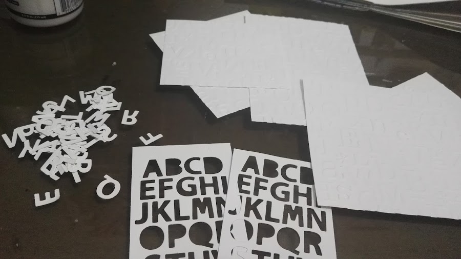 Automáticamente lo que me vino a la mente fueron letras, troqueladas, embossadas...y con eso crear una base y cubrir de gesso