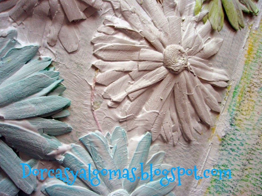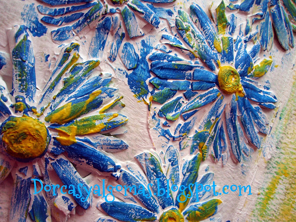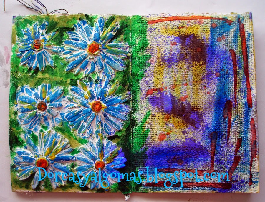 Ahora a partir de una idea de Donna Downey ( os dejo el enlace de esta maravillosa artista en Youtube AQUI para que podáis disfrutar de su trabajo), he pegado unas flores, regalo de mi amiga Eva.