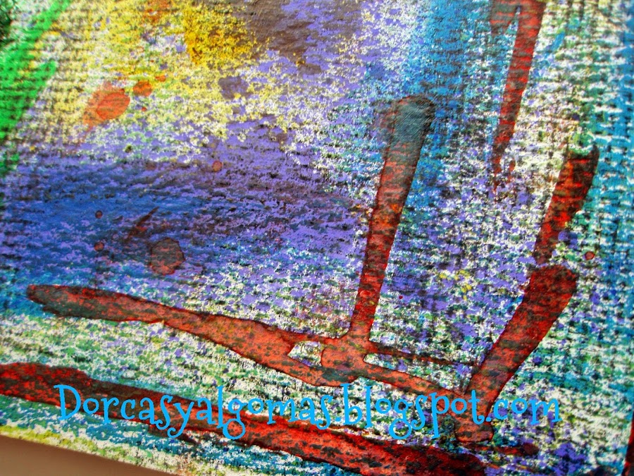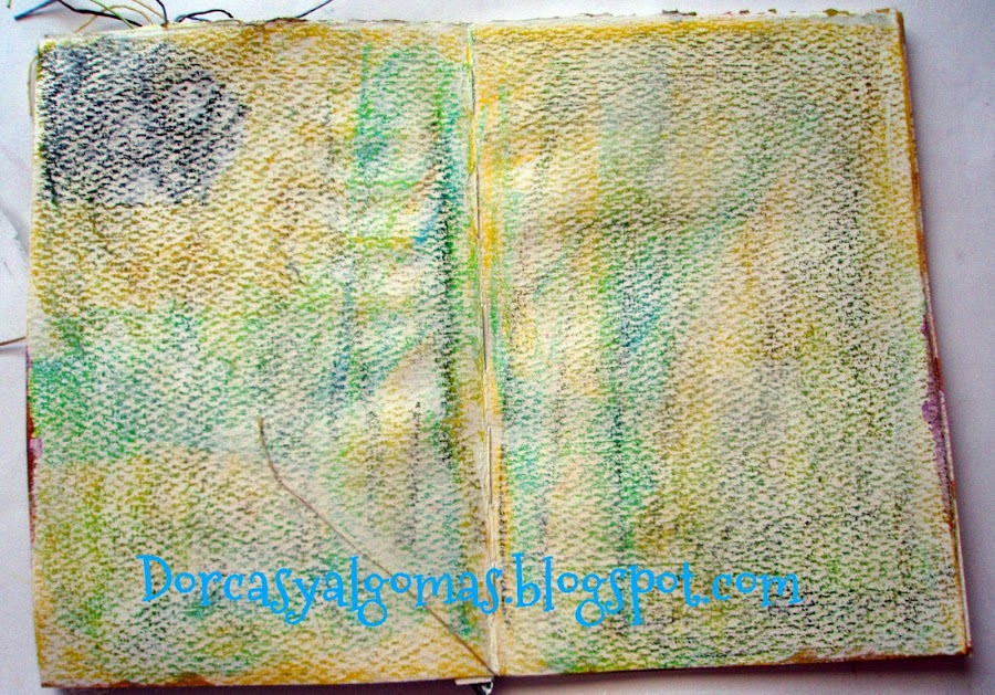 Para la primera capa del fondo he utilizado pinturas de cera y he dado unas pasadas con las pinturas puestas en horizontal.