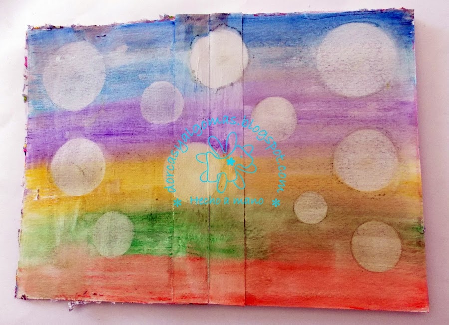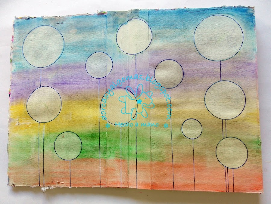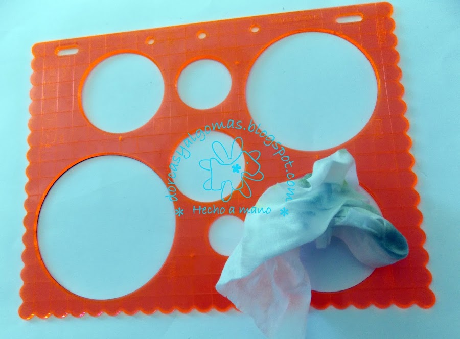 Dejo secar y con una plantilla de círculos y una toallita húmeda, marco los círculos.