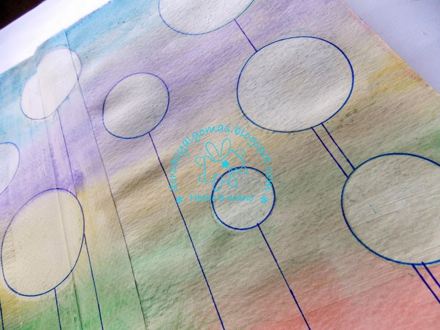 Dejo secar y con una plantilla de círculos y una toallita húmeda, marco los círculos.