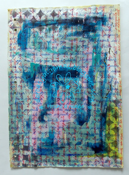 He escrito por toda la página la frase con rotulador azul.
