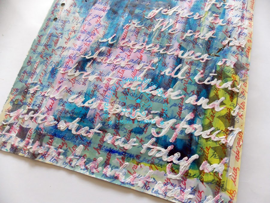 Con un stencil de escritura y pasta de modelar, marco la plantilla en una esquina: