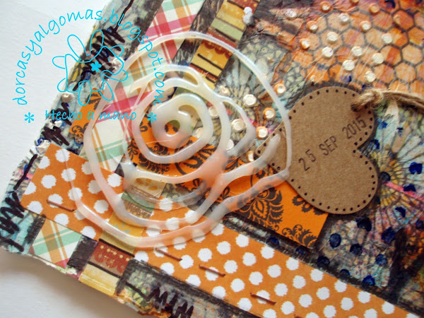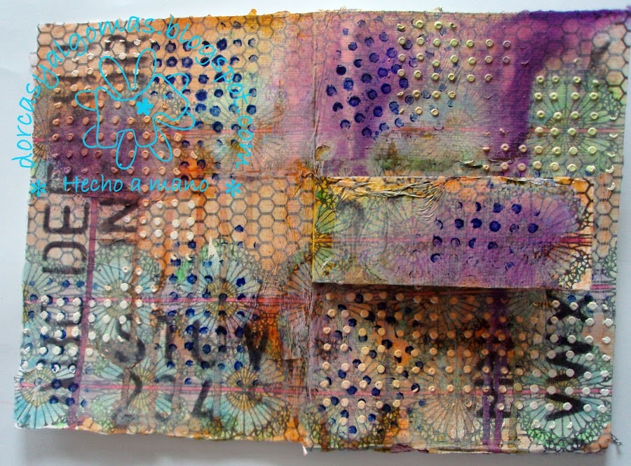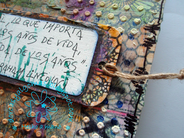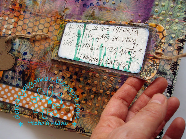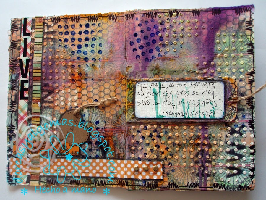 Con esta página comienzo el volumen nº 4 de "Caminando por la vida".Y está realizada a partir de una propuesta de Ruth Bernal, con el tema "Live" y como requisitos: Gesso, pasta de modelar y grapas.