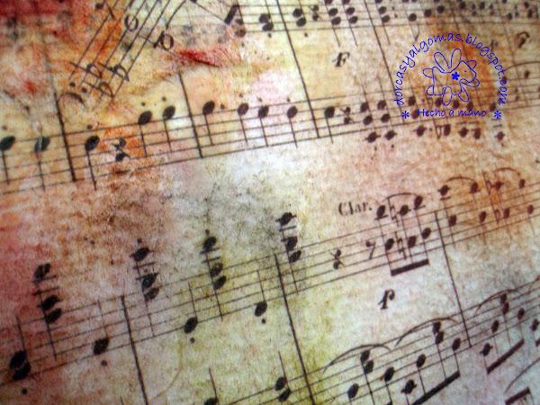 Para la primera capa de esta página, he empleado papel de arroz. Me ha sorprendido el resultado, una vez pegado en el soporte. Es muy distinto que el papel de servilleta ya que tiene mayor consistencia que éste último.